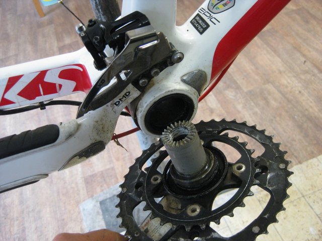 Další krok je sundání klik a ložisek středového složení. Zde BB-30