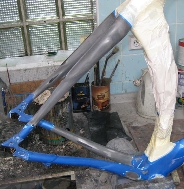 Na tomto příkladu pochopíte, že nastříkat rám podle originálu je někdy daleko složitější a časově náročnější než samotná oprava carbonového rámu.