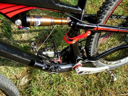 Tlumič FOX RP23 kashima couting s třema úrovněma nastavení „propedalu“. alternativní vedení hadičky zadní brzdy rámem a po horní stavbě. Přímé vedení bez zbytečných oblouků a vzduchových kapes.